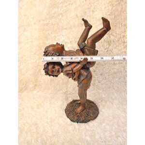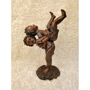 Bronze-Tone Resin Statue Of Children Playing 10.5" Tall Sculpture Rustic Home De