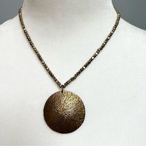 Bronze/gold tone textured pendant necklace