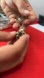 chain dangles a round jewel and pearl decorative piece that has three hinges. It opens up. There are 2 Clear Circle I guess or plastic that pop out with the gold ring so I believe you place your photos inside see photos.