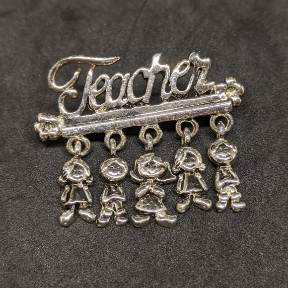 Really cute , silver colored teachers pin.