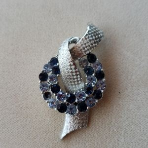 Beautiful wreath brooch with faux sapphire and light blue stones with silver ribbon running through center. NWOT (new without tag)