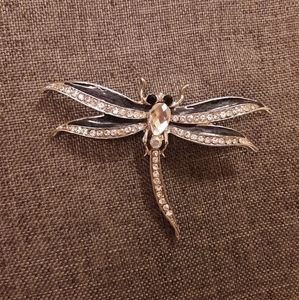 Shimmer silvertone dragonfly grey lacker on wings with rhinestones would black crystals for eyes 3in wide by2 1/2 in long