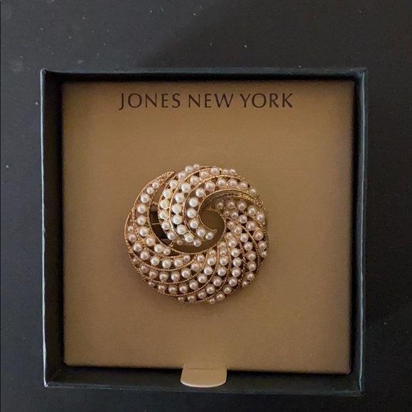 Elegant goldtone and pearl circular design. 1.75 inches diameter.