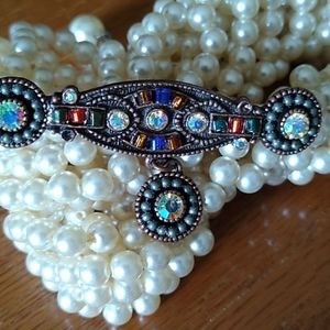 Beautiful brooch,looks to be made out of copper with iridescent stones,older piece~