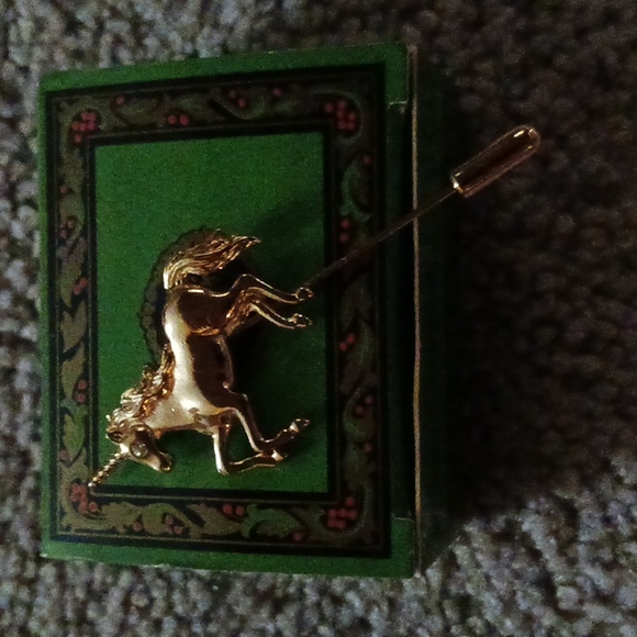 gold colored unicorn brooch excellent condition
