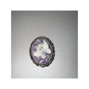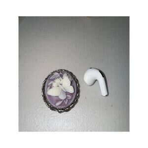Brooch / Butterfly / Lavendar Cameo Porcelain Pendant / Vintage