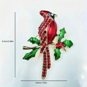 Brooch Cardinal Rhinestone Red Bird Enamel Holiday Heaven Pretty Trendy Stylish