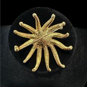 Beautiful Brooch Golden color with coral color rosemin the middle