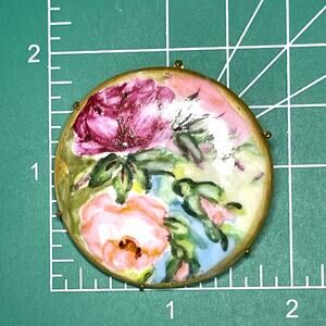 Another Lovely Brooch, hand painted flowers on porcelain with gold tone pronged setting and a c clasp. VINTAGE