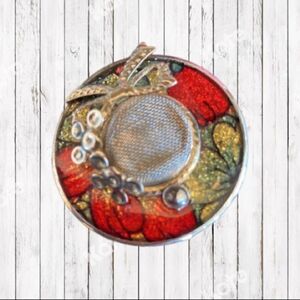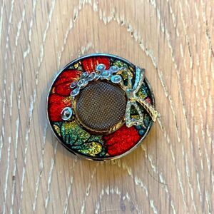 Brooch Hat Pin Vintage Mesh Enamel w Bow Jewelry
