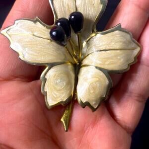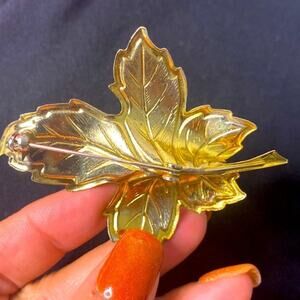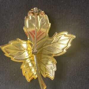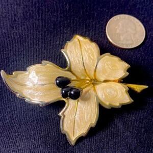 Vintage Pearly Enamel Harvest Maple Leaf Carved Pikake Gold t Brooch (Ca 16.15)
