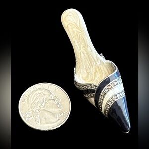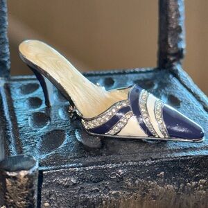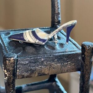 Silver tone Navy & Cream enamel crystal high heel shoe brooch is perfect for everyday wear or a night out on the town.
