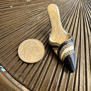 Brooch Navy and cream enamel rhinestone brooch -High Heel Shoe