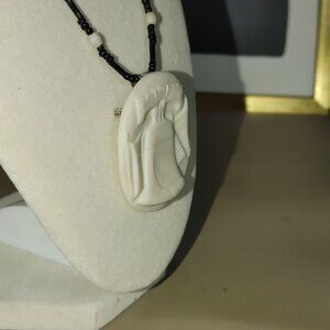 Minor surface scratches on back. Necklace length approx. 18 inches. Pendant diameter approx. 1.75 inches.
