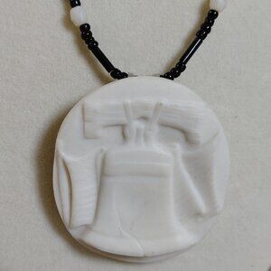 Brooch Pendant Liberty Bell Ceramic Porcelain Penny Sanford 353 Glass Necklace