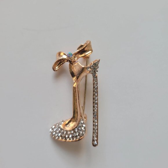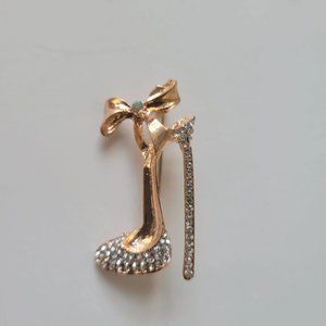 Brooch Pin Gold plated high-heeled shoe Crystals rhinestones Jewelry
