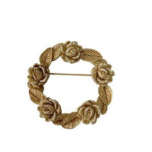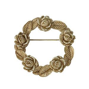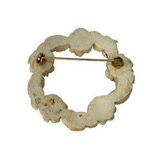 Brooch Pin Vintage 1960s Resin Rose Wreath Antiqued White 2" Diameter