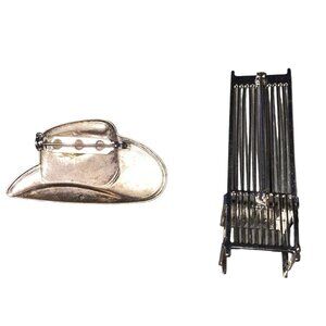 This stylish Unbranded brooch pin set features a silver cowboy hat and chair, embellished with sparkling rhinestones. Perfect for women who love unique accessories.