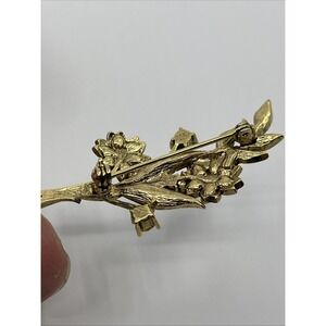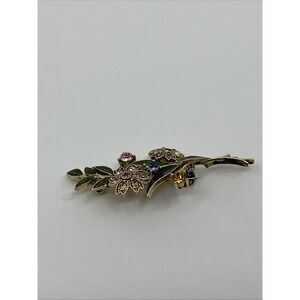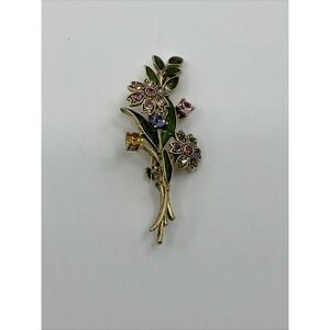 Brooch Pin flowers multicolor enamel w rhinestones Goldtone 2.25"
