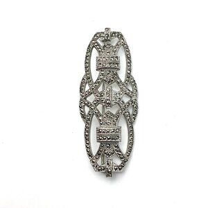 Brooch Sterling Silver Vintage Filigree Style Marcasite Stone Brooch Pin