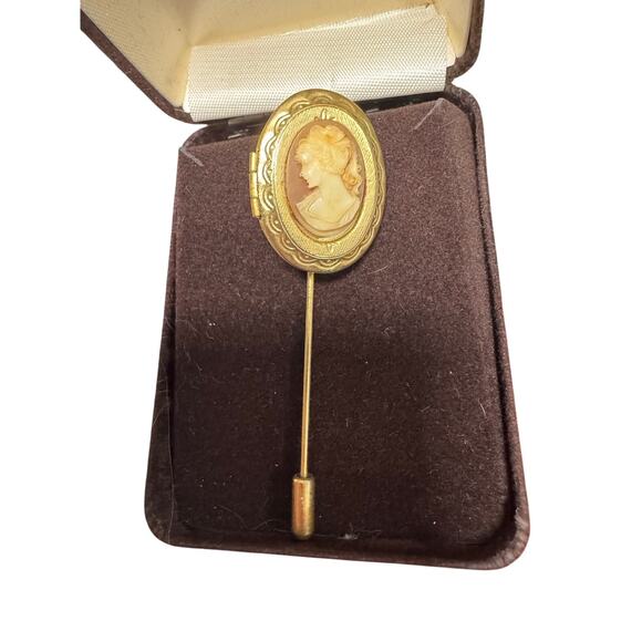 Brooch / Stick Pin / Cameo / Locket / Gold tone / Shell / Antique