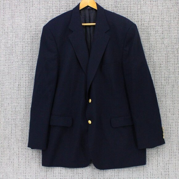 Brook Brothers 346 Blazer Men Sz 46R Navy Blue Two Button Front Wool Blend Lined
