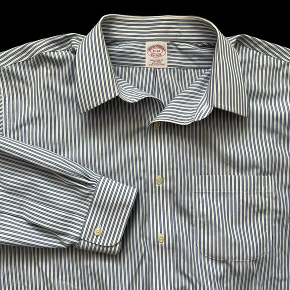 Brook Brothers Blue Striped Shirt Long Sleeve 17-34 MEN TRADITION FIT NON IRON