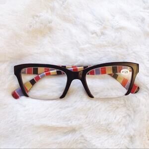 The Brooke reader glasses are known for its unique but classic look. A great accessory for any woman who loves to stand out and express her style in an understated way. The readers have a classic cat eye shape, plastic frame and offer clear reading.