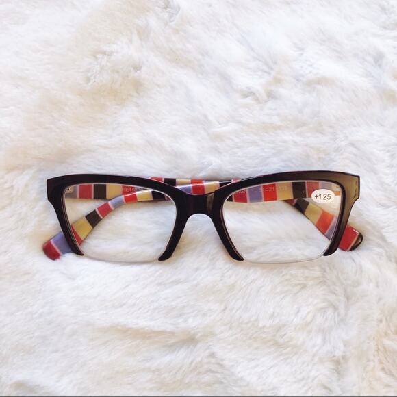The Brooke reader glasses are known for its unique but classic look. A great accessory for any woman who loves to stand out and express her style in an understated way. The readers have a classic cat eye shape, plastic frame and offer clear reading.