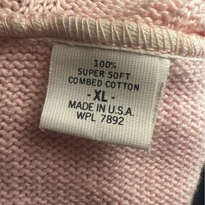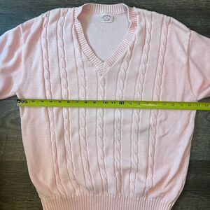 Brookes Brothers Pink Cable Knit Super Soft Combed Cotton V-Neck Sweater XL