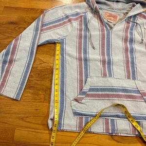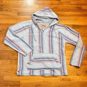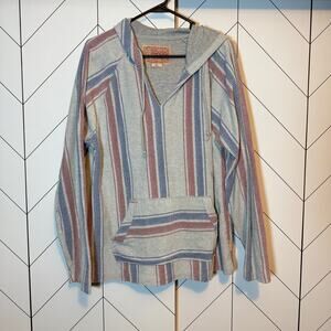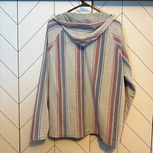 Brooklyn Cloth Baja Women’s XL Gray Red Blue Striped Pullover Hoodie Sweatshirt