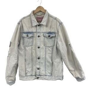 Brooklyn Cloth Denim Jacket Distressed Light Wash Button Front XL