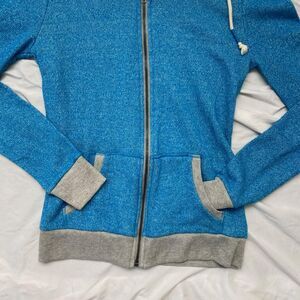 ༓ super soft blue and gray color block long sleeve zip up hoodie sweater jacket