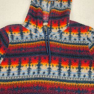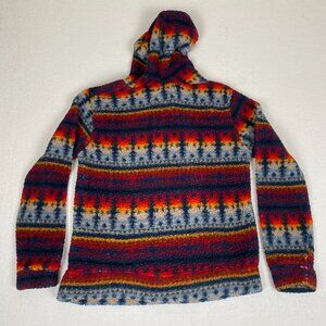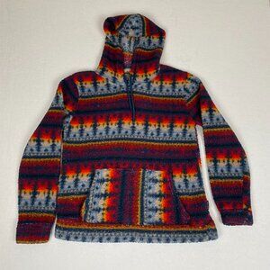 Brooklyn Cloth Fleece Aztec Native Geometric Sunset Print Color Striped Hoodie Sweatshirt Size Medium