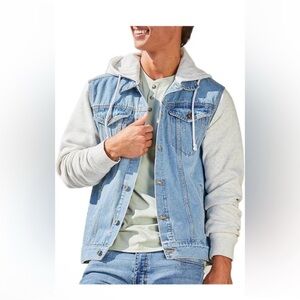 Brooklyn Cloth Light Blue and Gray Hooded Denim Jacket Men’s L
