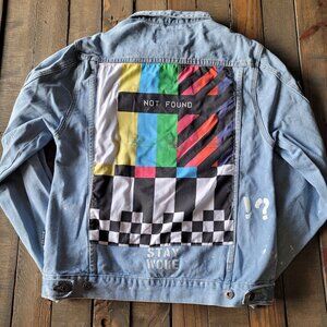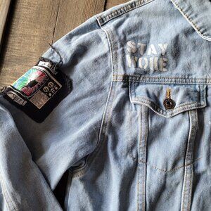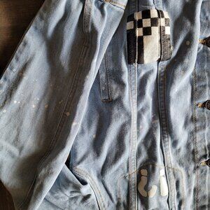 Excellent preowned condition. Has patches, distressing, and painted words.