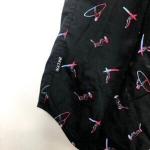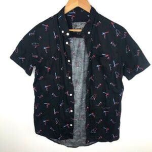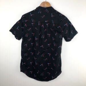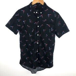 Brooklyn Mfg. Co. black short sleeve button down shirt with red and blue surfer print. Men's size small. In great condition!