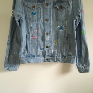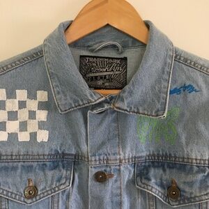 Brooklyn Cloth Savage Graffiti Blue Denim Jean Jacket Mens Sz M Doodles Allover