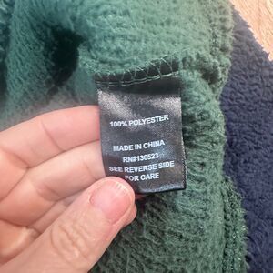 Made from ultra-soft 100% polyester fleece, it features a cozy sherpa texture with a drawstring hood, front kangaroo pocket, and bold colorblock design in green, navy, burgundy, and cream. Perfect for layering on chilly days or lounging in comfort.