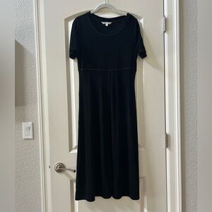 Cozy joggers. Side pockets and one back pocket. Black with white speckles. Elastic waist band. The tie around the waist is missing. Otherwise in great shape.