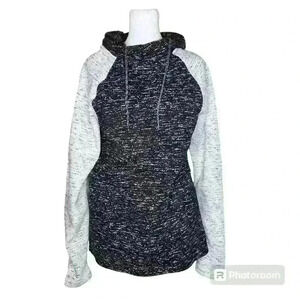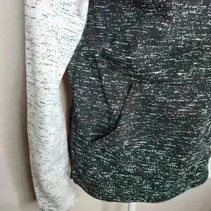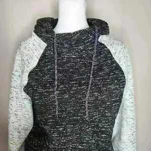 Brooklyn Cloth women's gray pullover hoodie size small. Stretchy! Oversized. Light gray sleeves, black torso. Front pocket. In excellent pre-owned condition. No flaws. Measurements are approximate and taken flat.