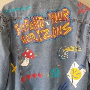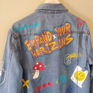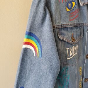 Brooklyn Clothing M Indie Sleeze 90s Grunge Flames Rainbow Unisex Jean Jacket