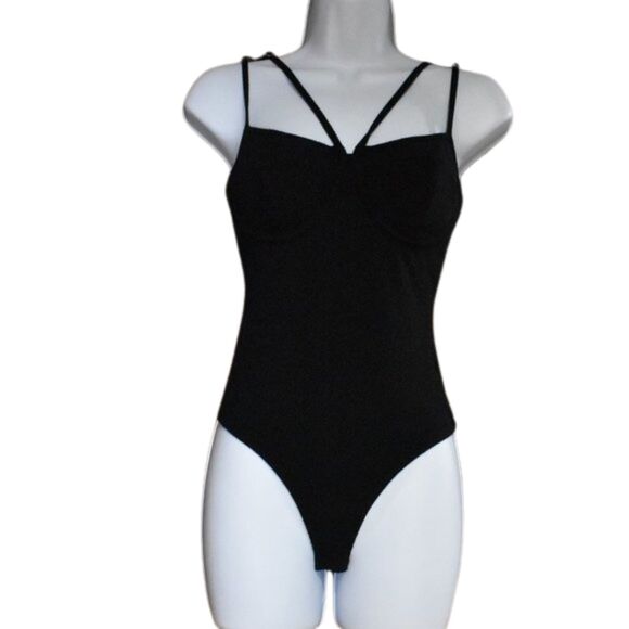 Brooklyn Karma Black Strappy Underwire Bodysuit Size Medium Thong Adjustable