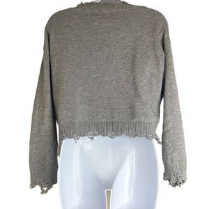 Brooklyn Karma Pullover Crop Sweater Gray Distressed Thrash Frayed V Neck Small