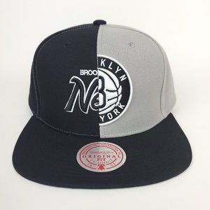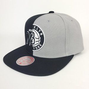 Brooklyn Nets Mitchell & Ness NBA Snapback Hat Split 3D Logo Black Gray Cap NWT