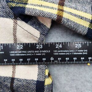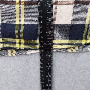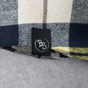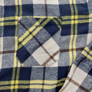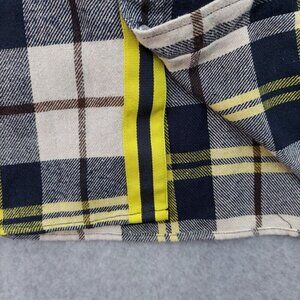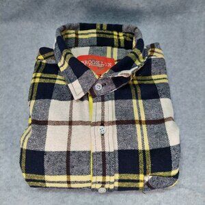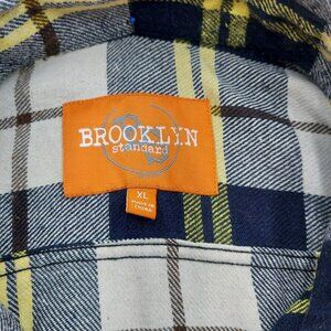 Crafted for comfort, this Brooklyn Standard flannel shirt features a vibrant plaid design in navy, yellow, and white. Its classic style and button-down front offer a timeless look for casual or work settings.