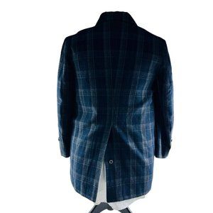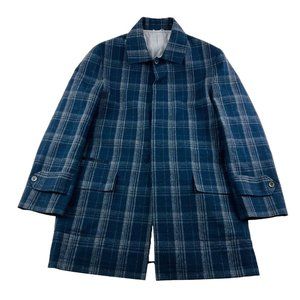 Brooklyn Tailors Blue & Gray Plaid Wool Overcoat Mens Size Size 1