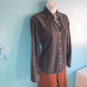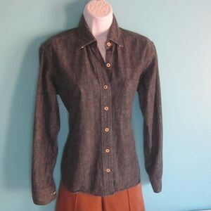Brooklyn Tailors Womens Size L Custom Made Dark Blue Denim Fitted Shirt 42" Bust