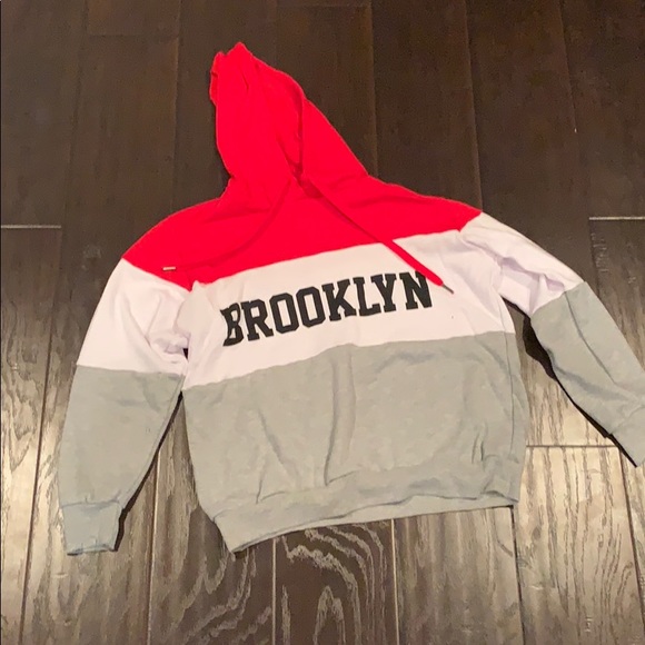 Red, black, grey, and white hoodie