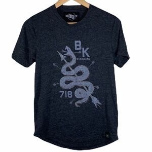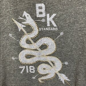 Heathered dark gray slate Hilow tough. From Brooklyn standard. Features a snake with gold rivets and 718 for the New York area code.